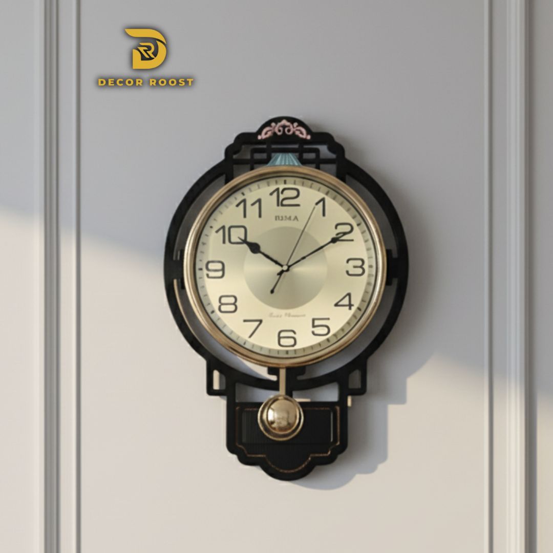 Featuring a large, easy-to-read dial, smooth sweeping hands, and a pendulum-style lower design, this piece blends modern simplicity with classic charm.